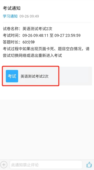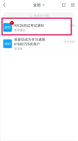 收件箱里找到学校考试发布的考试通知,点击查看进入通知页面。