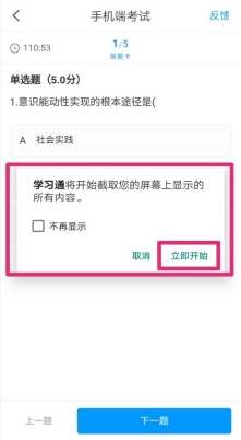在首页-考试-考试列表端进入考试。进入考试之后会提示“学习通将开始截取您的屏幕上显示的所有内容”,考生需点击“立即开始”。