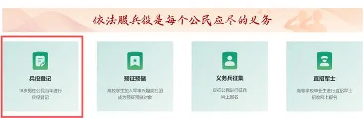 如果还未进行兵役登记,请点击“兵役登记”进入页面。