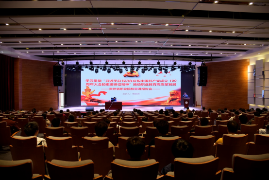 报告会上,杨丽芳副书记围绕习近平总书记“七一”重要讲话精神,从百年密码—“伟大目标”与“伟大精神”、百年辉煌—一个“伟大梦想”与四个“伟大成就”、百年起点—响应伟大号召开创美好未来等三方面,用大量鲜活的故事和实例进行讲述,并在以史为鉴开创未来的“九个必须”中,结合习近平总书记考察贵州时对贵州的关怀和重要指示精神、习近平总书记对全国职业教育大会的重要指示、习近平总书记2015年视察我校时的重要指示精神,结合两办近期印发的《关于推动现代职业教育高质量发展的意见》要求以及校情实际等,就怎样贯彻落实习近平总书记“七一”重要讲话精神进行了深入浅出的宣讲。