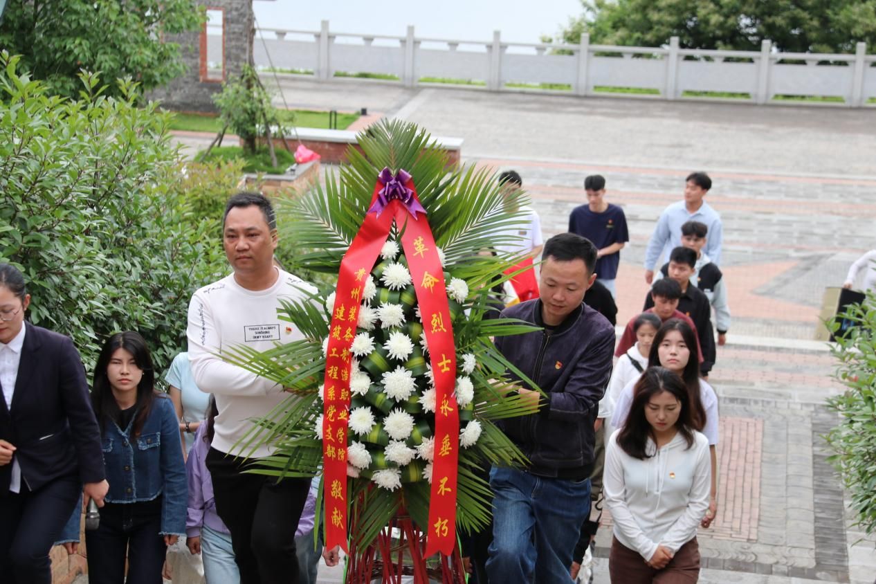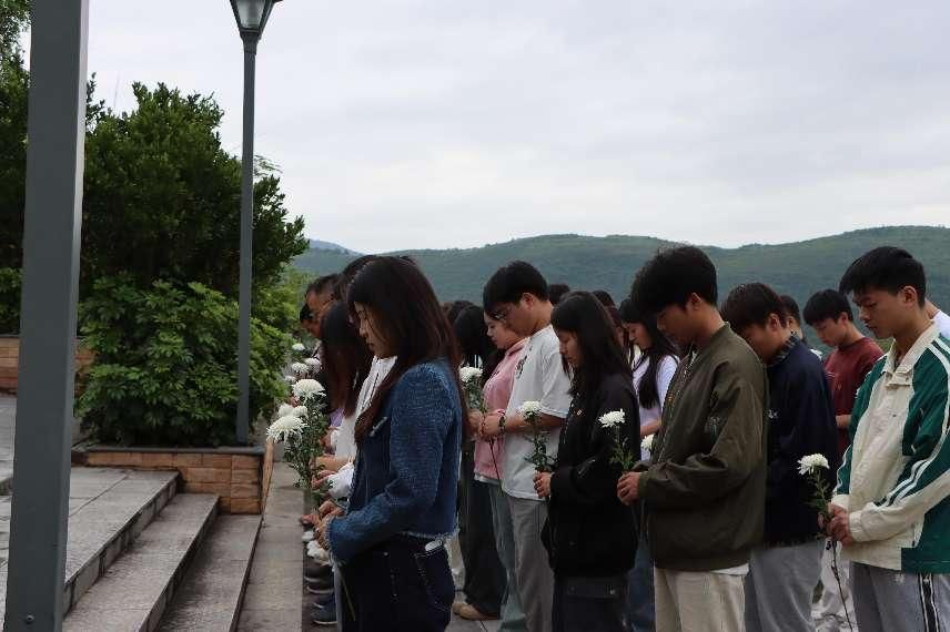 迈着沉稳的步伐,全体学员向纪念碑敬献花篮,总支书记和系主任仔细整理花篮上的缎带,寄托对革命先烈的深切缅怀与崇高敬意。全体学员向纪念碑三鞠躬,对先烈们英勇无畏、无私奉献精神致敬。