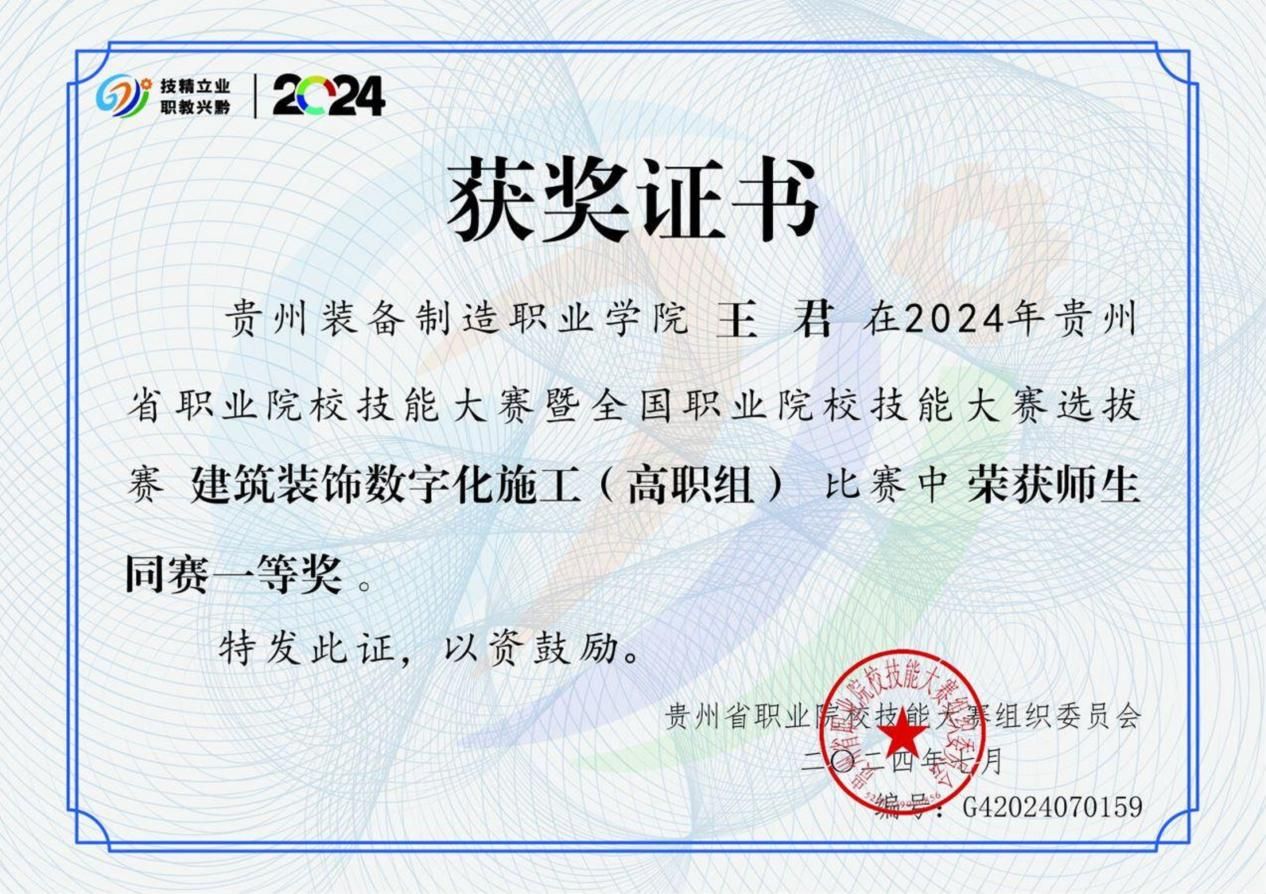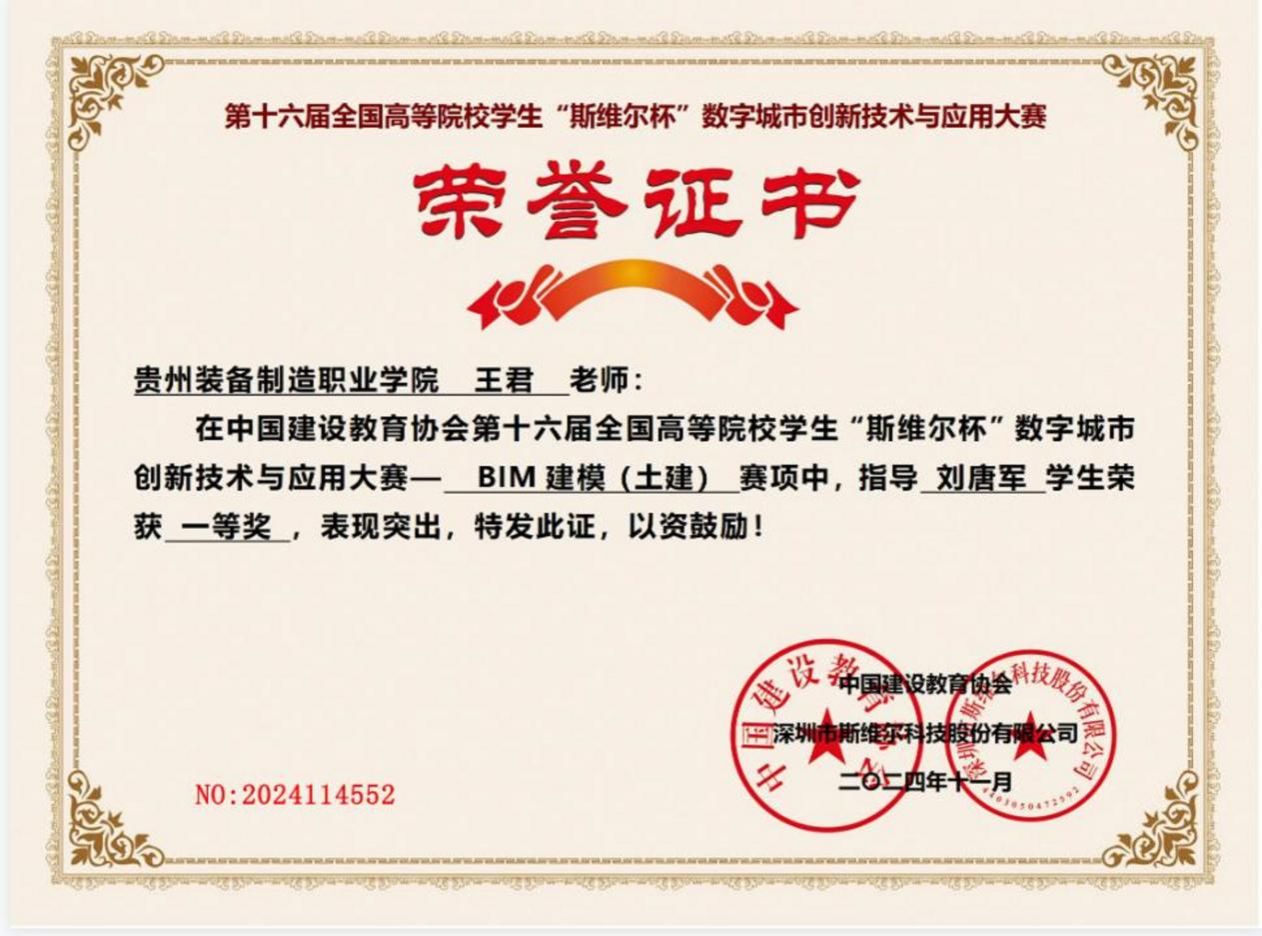 五年来,学生在各级各类竞赛中捷报频传,斩获“互联网+”大学生创新创业大赛贵州省决赛金奖、首届全国大学生职业规划大赛总决赛职教组成长赛道铜奖,在金砖国家职业技能大赛“建筑信息建模”赛项、贵州省职业院校技能大赛中多次荣获一、二等奖,累计获国家级、省级奖项数十项。近三年毕业生就业率均保持在88%以上,多数毕业生扎根建筑行业一线,成为推动区域城市建设的骨干力量。