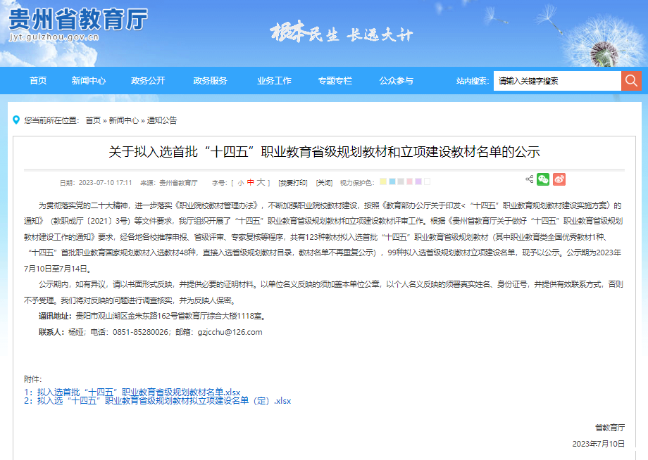 根据《省教育厅关于开展“十四五”职业教育省级规划教材建设有关工作的通知》文件精神,2023年我校组织报送6本教材申报省级规划教材。根据省教育厅官网7月11日公示的情况,我校推选的6本教材全部入选首批“十四五”职业教育省级规划教材或立项建设教材名单。