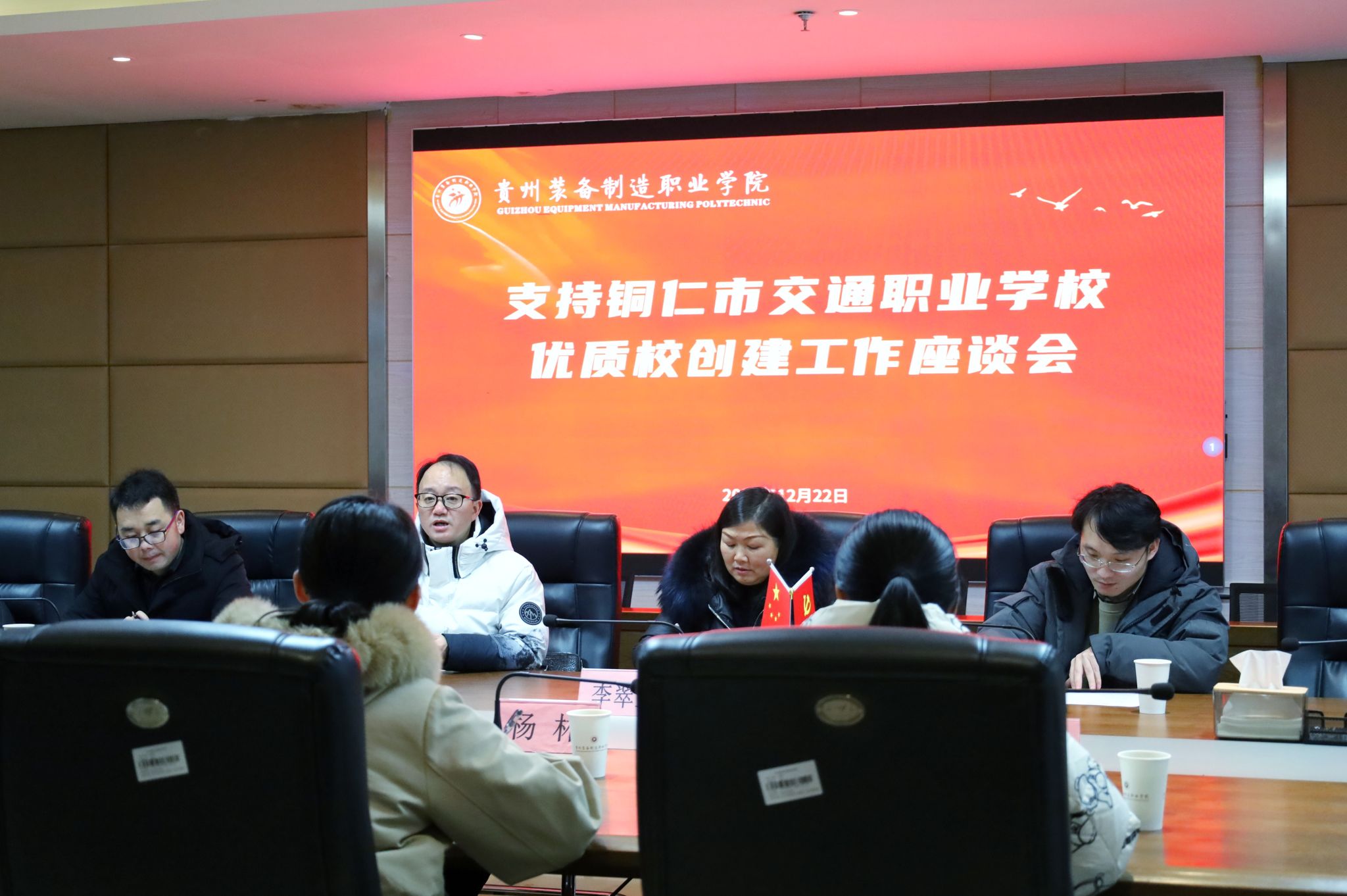 共话发展,促进提升。2023年12月22日,装备职院铜仁市交通职业学校创建省级优质校工作座谈会在学校培训中心会议室召开。学院党委副书记、院长金焱,学院党委委员、副院长李秀丽携规划处、教务处等部门负责人接待了铜仁市交通职业学校副校长刘祖勇一行。会上,刘祖勇详细介绍了学校办学成效、师资队伍建设、专业发展情况、办学特色等。金焱院长表示要结合铜仁市交通职业学校的实际情况和需求,帮助其找准发展定位,理清发展思路,全力支持其优质校创建工作。希望两校在结对帮扶过程中,架起共进桥梁,共同探索出一条符合地方特色的职业教育发展之路。