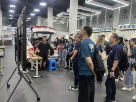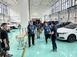 随后,代表团一行又参观了我校汽车科普馆及国家级汽车技术实训基地。在汽车智能制造实训中心,汽车系的老师们带领代表团的老师们和同学们参观了吉利汽车产业学院、比亚迪应用技术产业学院,并与目前正在积极备战国赛的我校老师和同学们一起体验了智能网联汽车技术从“制造→检测→营销→维修”的全产业链过程。