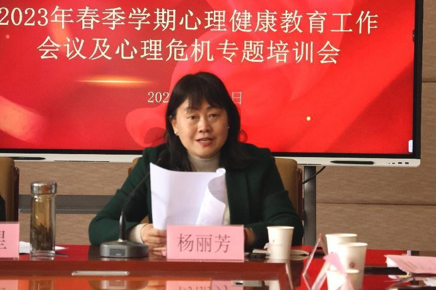 为全面贯彻落实中共教育部党组《高等学校学生心理健康教育指导纲要》(教党〔2018〕41号)、《教育部办公厅加强学生心理健康管理工作的通知》(教思政厅函〔2021〕 10号)、《省教育厅关于加强新时代学生心理健康教育工作 的通知》等文件要求,不断构建全员、全过程、全方位的心理育人体系。我院于2023年3月30日召开了春季学期心理健康教育工作会议及心理危机专题培训会,学院党委书记熊星、党委副书记杨丽芳、各系党总支副书记及团总支书记、心理健康教育工作负责老师参加会议,学院团委副书记孙文同志主持会议。