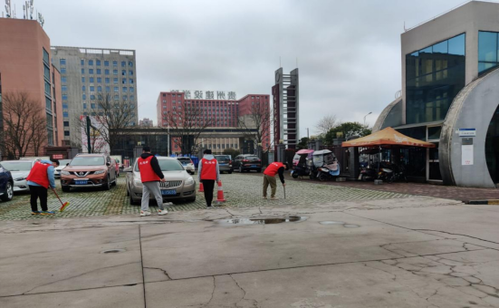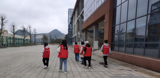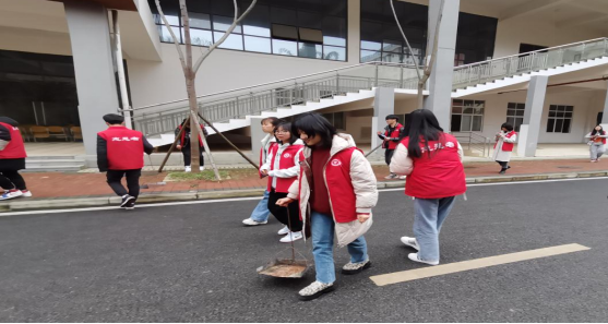 同学们在校园停车场、思贤广场、梦想广场、足球场、篮球场等场地,按照提前分配好的任务进行美化校园的义务劳动,红色马甲的身影穿行在校园的各个角落