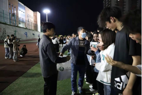 (辅导员岳林林老师为同学们发放小礼品)