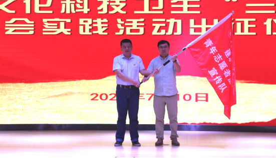 党委书记熊星老师为团委暑期“三下乡”社会实践活动队伍授旗