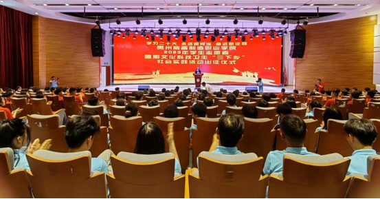 出征仪式上,学院党委副书记杨丽芳同志宣读了学院2023年暑期文化科技卫生“三下乡”社会实践队伍名单,并强调,志愿服务是实践育人的重要载体,未来一段时间里,在党旗的指引下,团旗的号召下,全院20支队伍,近200名青年师生将会用他们的足迹遍及遵义、六盘水、安顺、荔波、台江等地,将装院青年学子朝气蓬勃的身影活跃在各个实践活动中。希望同学们通过参加社会实践活动,用心去体会,用脚步去丈量乡村大地,在志愿服务过程中宣传贯彻习近平新时代中国特色社会主义思想,坚定理想信念,厚植家国情怀,提升国情民情认知,培养与人民群众的真挚感情,不断增强服务社会、奉献家乡的使命感和责任感。希望参与暑期文化科技卫生“三下乡”的20支社会实践队伍,走进社区、走进乡村、走进基层,发扬艰苦精神,拼搏奋斗的精神,用青春的激情奏响“清澈的爱、只为中国”的时代强音,用青春的行动践行“请党放心、强国有我”的铮铮誓言。