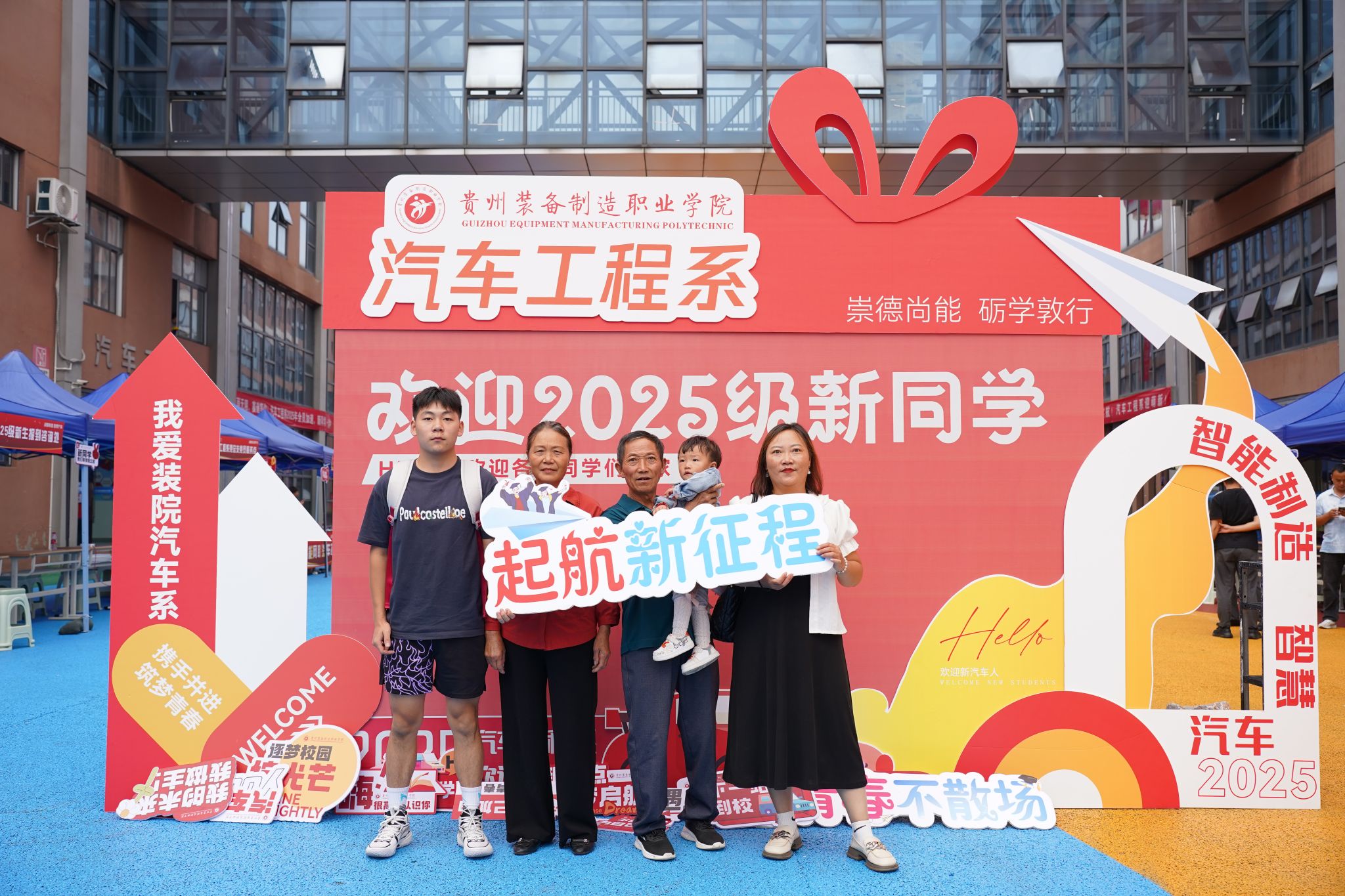 迎新“欢迎2025级新同学”的标语格外醒目。老师与志愿者们穿梭其间,有的耐心指引报到路线、细致解答专业疑问,有的主动接过新生手中的行李,用热情驱散初来的陌生感。更贴心的是,系部为每位新生准备了专属见面礼——印着“汽车工程系”字样的帆布包、精致校徽与可爱玩偶,一份份心意让新生刚踏入校园,便感受到如家般的温暖关怀。