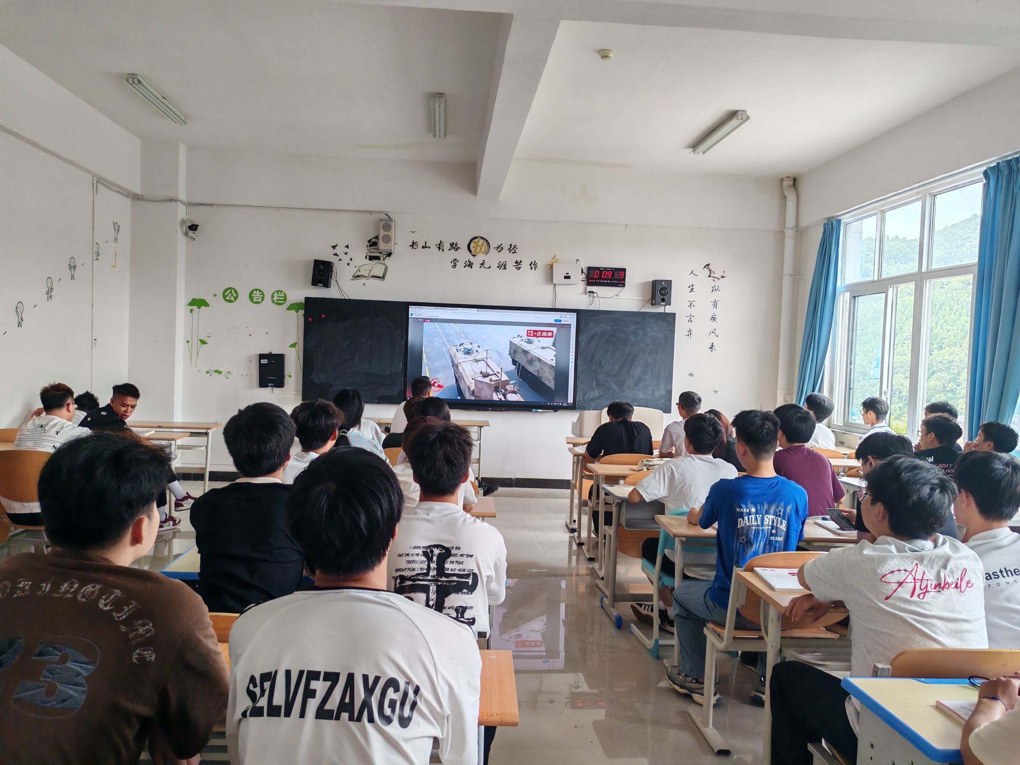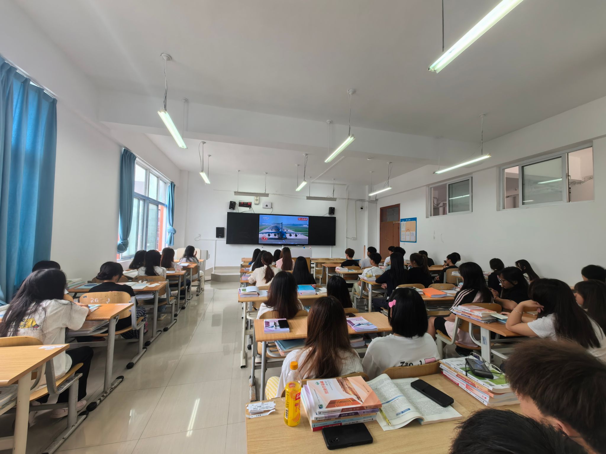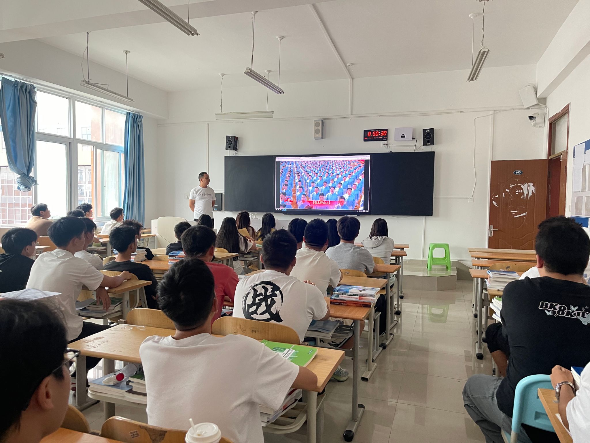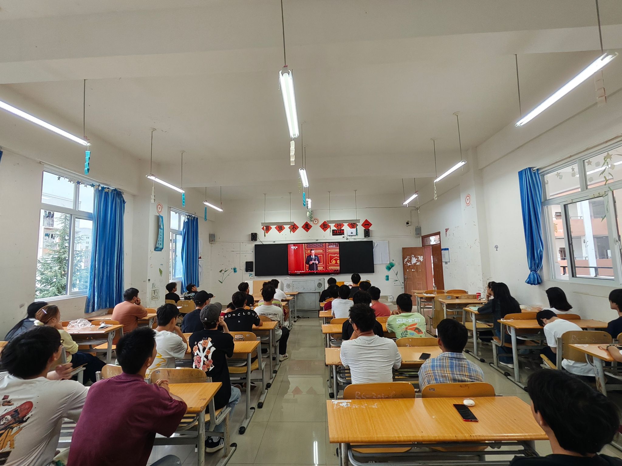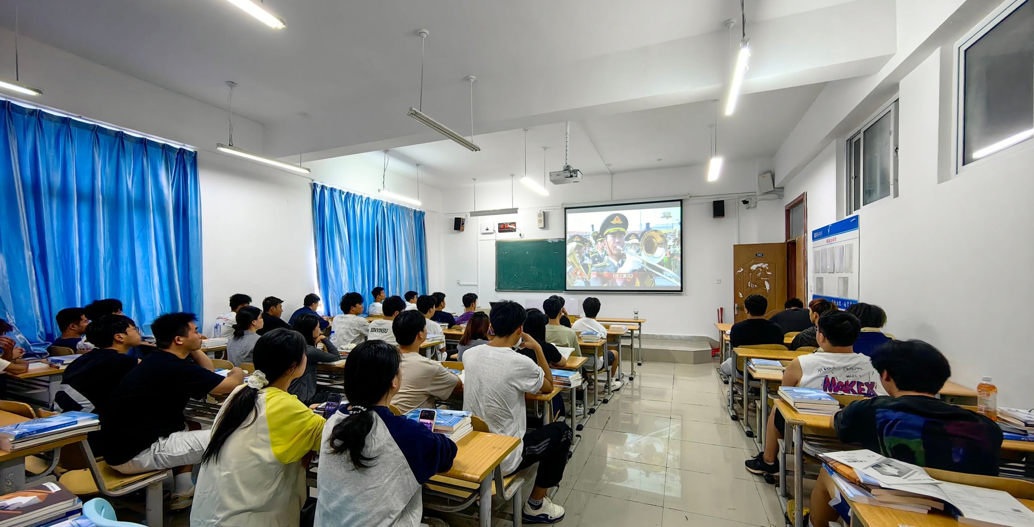 9月3日上午学校党委领导班子成员和全体教职工生齐聚在101会场和各教学楼教室,共同收看纪念中国人民抗日战争暨世界反法西斯战争胜利80周年大会直播。大会包括约70分钟的盛大阅兵。