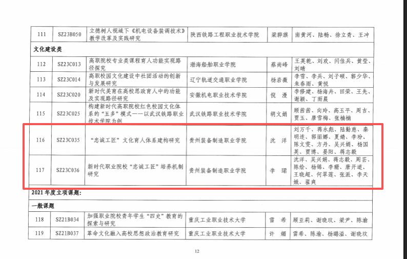重点课题:王俊菲《数字化背景下职校学生思政课学习力现状与提升策略研究》(SZ24A017);文化建设课题:沈洋《“忠诚工匠”文化育人体系建构研究》(SZ23C035);文化建设课题:李珺《新时代职业院校“忠诚工匠”培养机制研究》(SZ23C036)。向三位老师及课题组致以热烈祝贺!