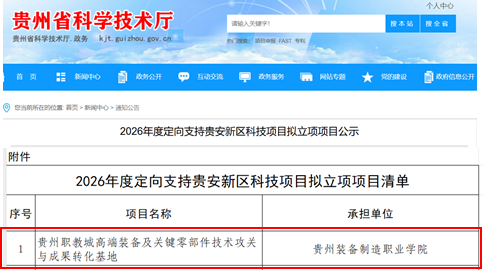 近日,喜讯再传!在清镇职教城管委会的大力推荐下,经贵州省科技厅严格评审与公示,我院拟新增3项省科技厅立项项目。